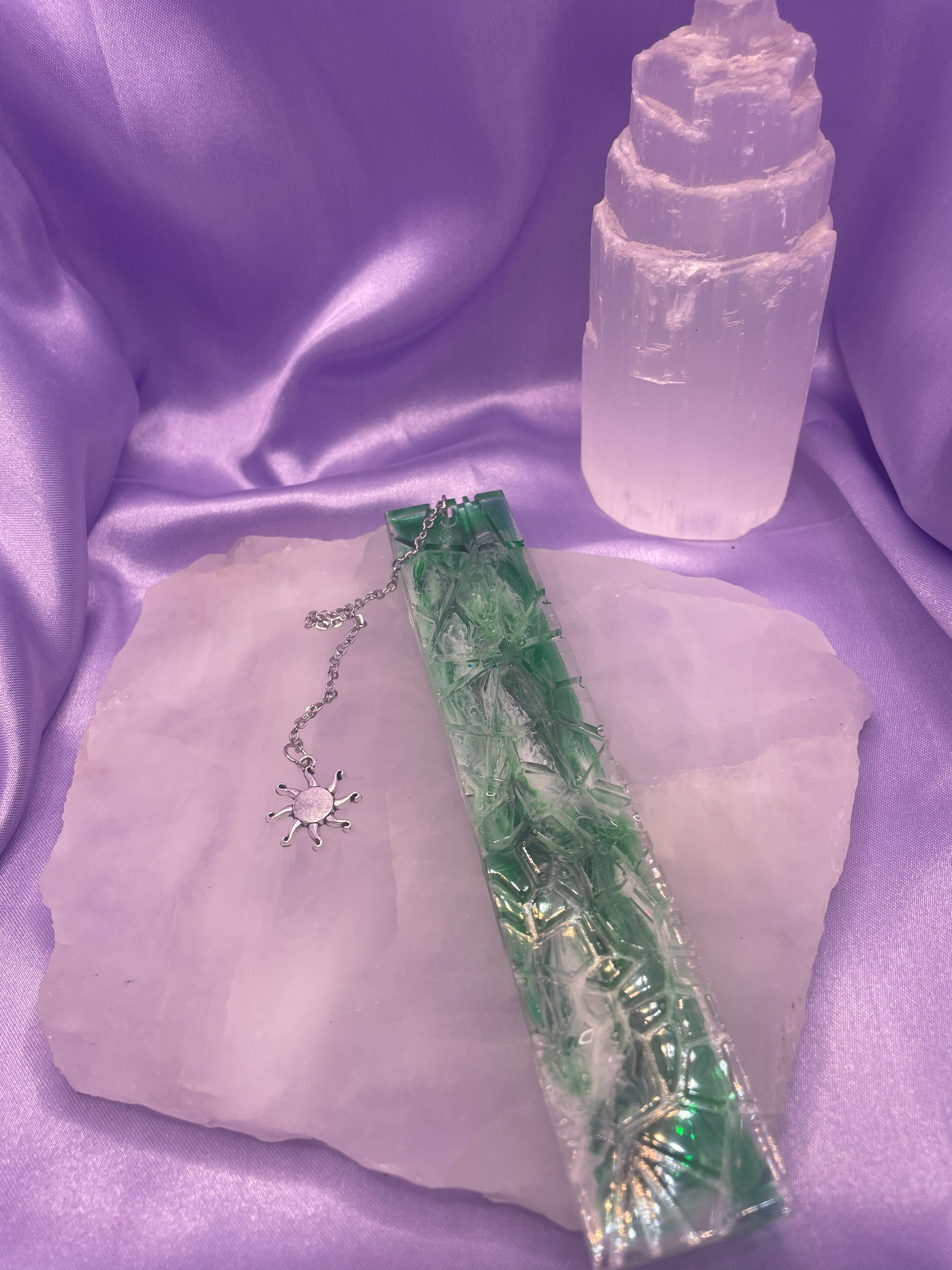 Green/White Geo Bookmark with chain-sun
