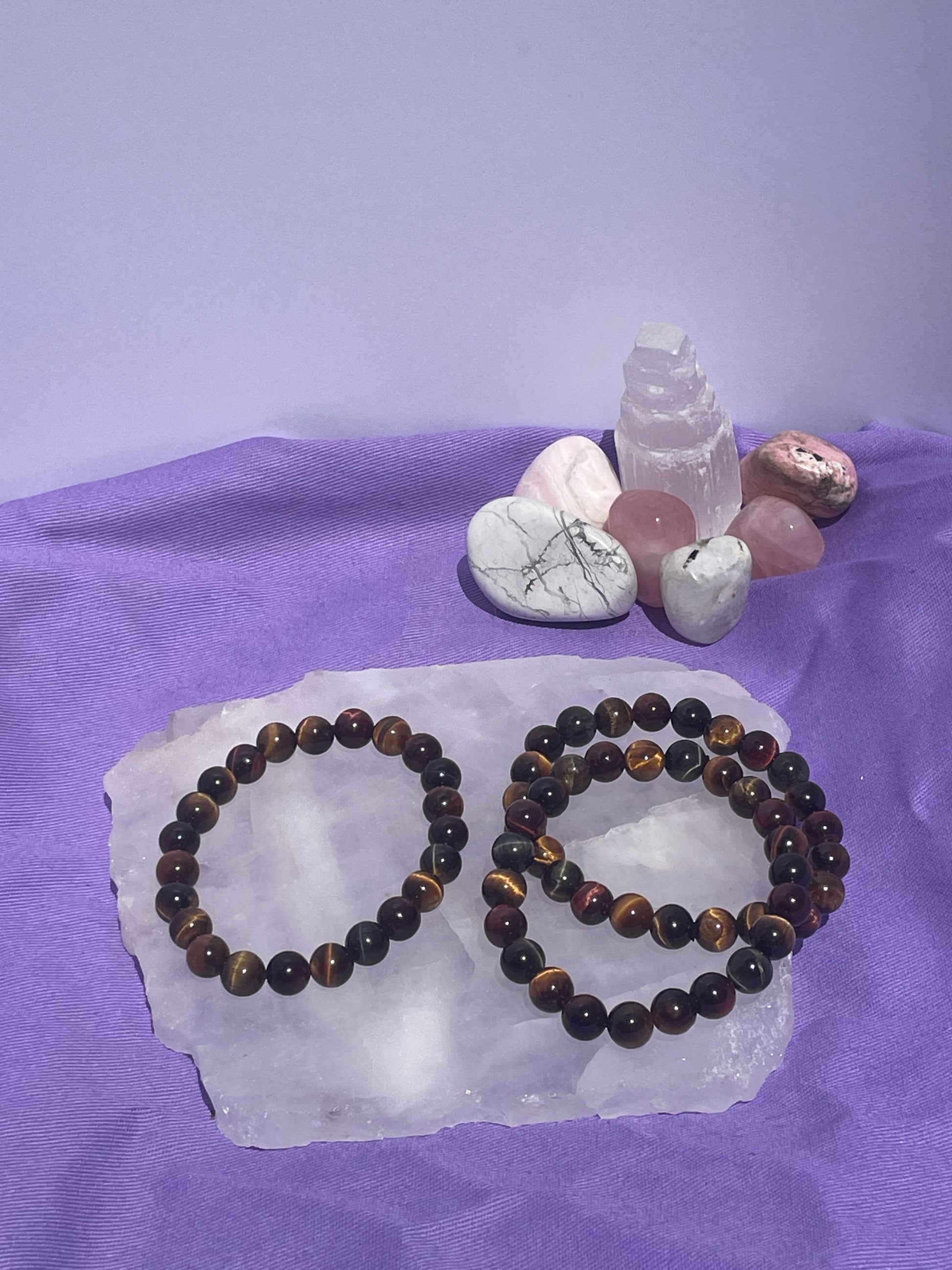 Tri-colour Tigers Eye 8mm bead crystal bracelet